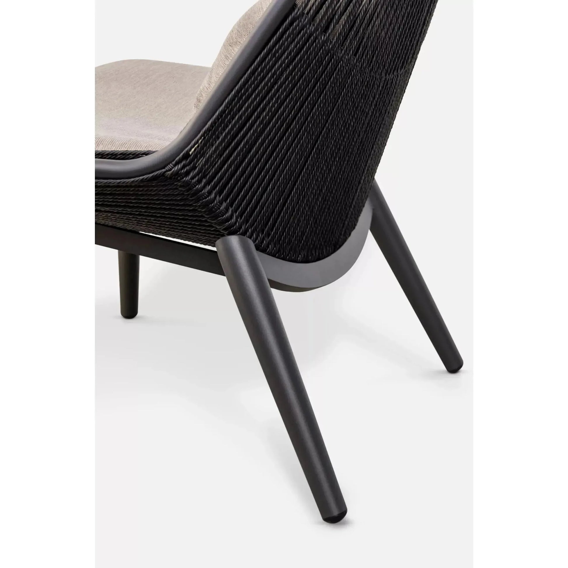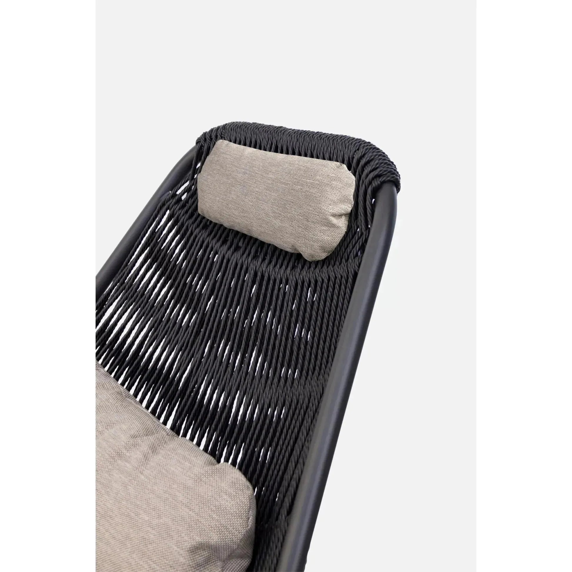 The Alcala Lounge Chair exudes sophistication and sleek design, making it the ideal accent piece to complete your outdoor space or transform an under-utilised area into a relaxing oasis. Crafted with precision, this chair boasts a resilient aluminium frame, black twist synthetic wicker, and a plush cushion made from beige woven outdoor fabric.