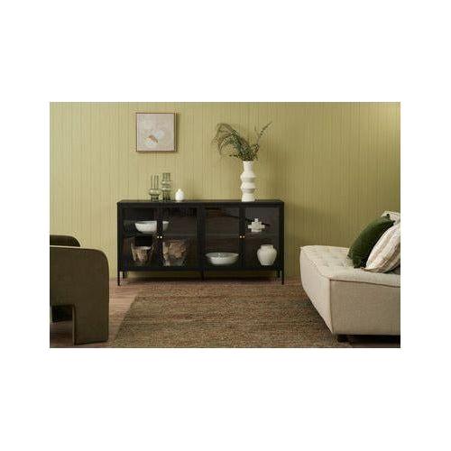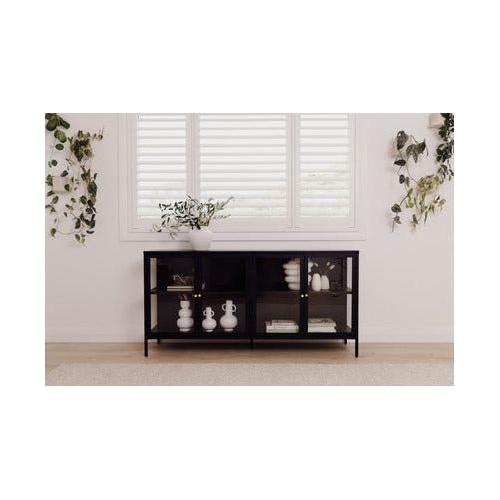 Update your indoor living area with the contemporary and functional Carmel collection. Constructed in black steel with glass panel doors and sides. The Carmel collection will make a stylish addition to your living area and offers generous space to store and display all types of objects.