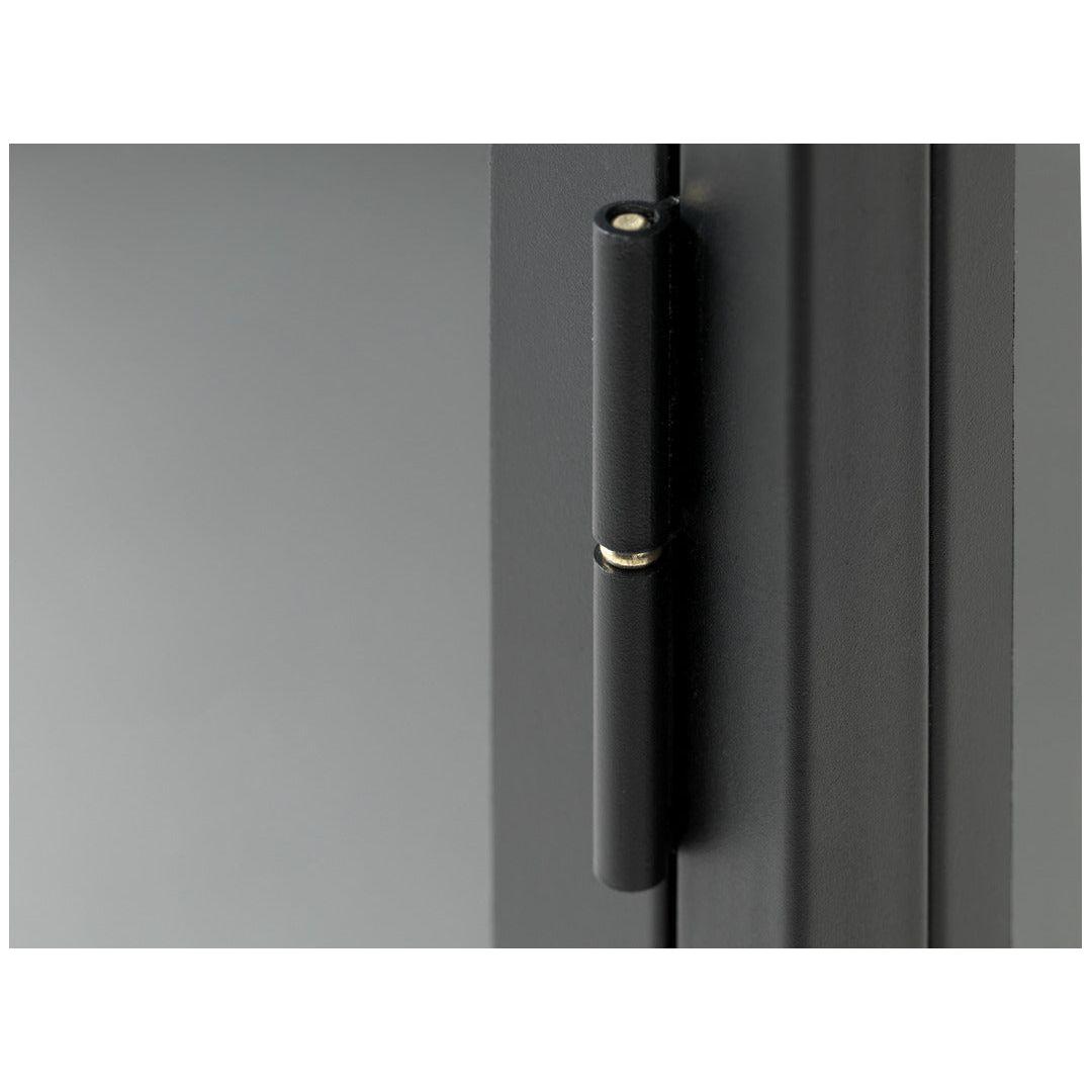 Update your indoor living area with the contemporary and functional Carmel collection. Constructed in black steel with glass panel doors and sides. The Carmel collection will make a stylish addition to your living area and offers generous storage space.