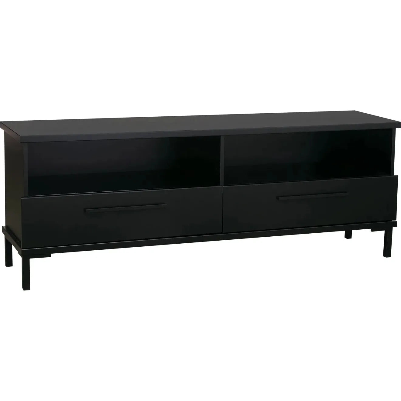 With two deep drawers and lots of space for your electronic components, this wide entertainment unit in black finish with black handles will comfortably fit a 65'' TV.