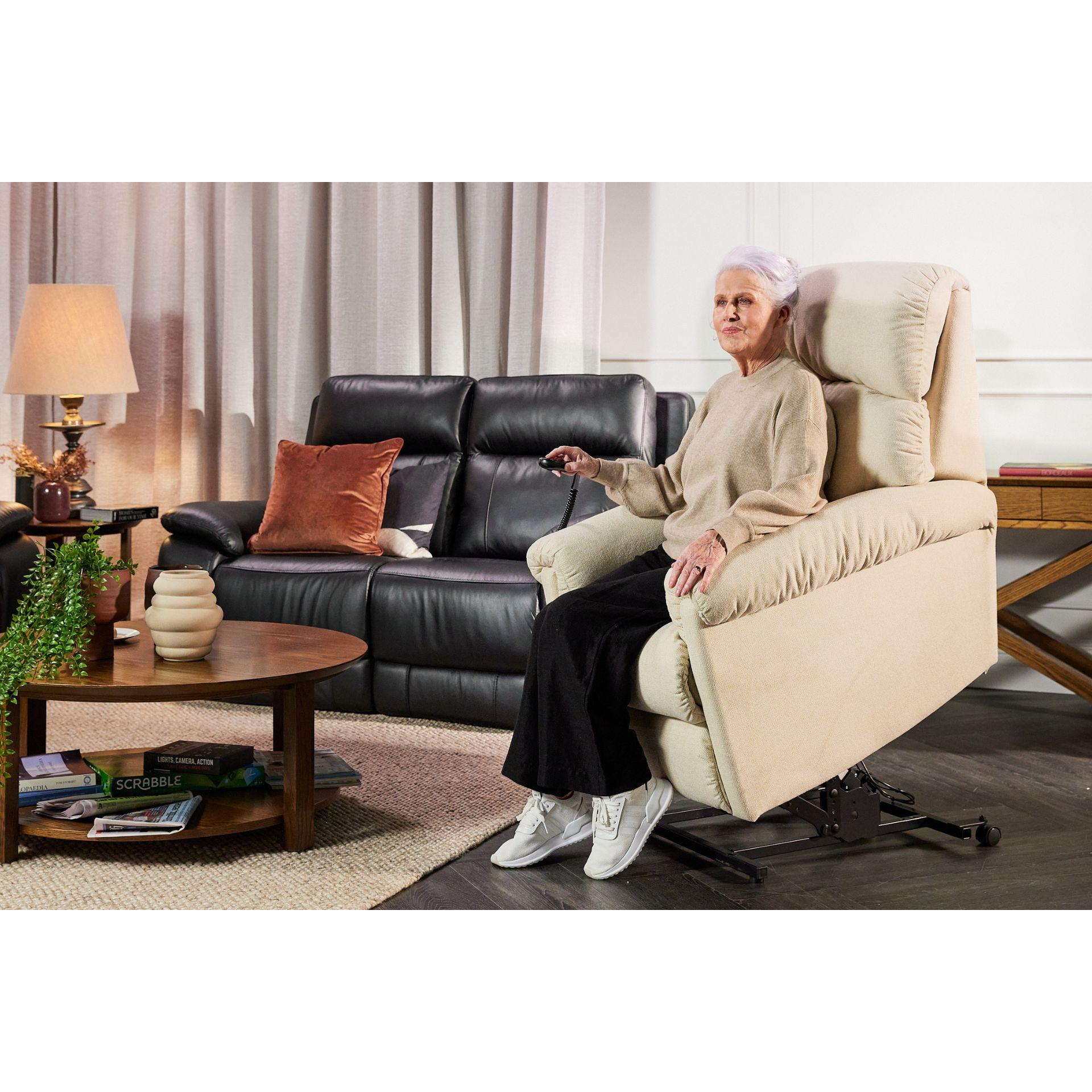 Meet the Eden Bronze Power Lift Chair. Part of our best selling Eden range, this product offers the ability to sit and stand independently. Single motor, easy to operate two button hand control, which will ease you into a comfortable reclining position in seconds. This lift chair can be moved from room to room with ease plus has a side pocket storage for remote, newspaper, or magazine.
