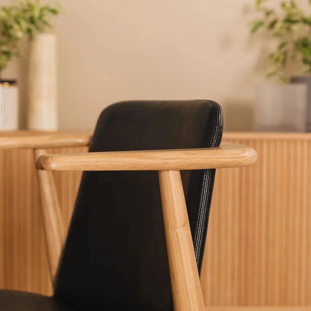 The Flores Dining Chair knows how to make an entrance. With a silhouette that channels timeless mid-century style, its T-rex-like arms fit snugly under most dining tables (without any dino drama). The durable, antique-finished, double-stitched PU upholstery laughs in the face of stains and spills, while the stunning grained ash frame brings it all together.