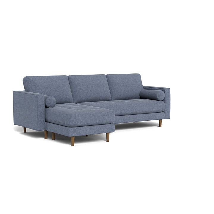 Retro vibes. The Harper 3 Seater Reversible Chaise in Fabric features a reversible chaise and classic styling that evokes a retro look. With its tufted seating, squared off slim arms, tidy lines perched on tapered legs is a compact chaise that screams contemporary yet classic with the additional bolster cushions, ideal for apartment living. Not to mention comfortable lounging! Have fun making this more you - your sofa can be completely customisable in your choice of fabrics and hues to suit your style.