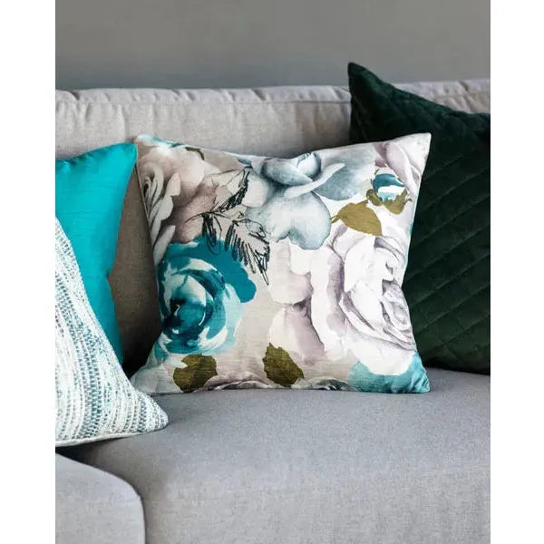 A timeless floral design that exudes sophistication. Hermione's elegant rose motif in subtle shades of blue, grey and white, creates a delightful focal point for any interior scheme.