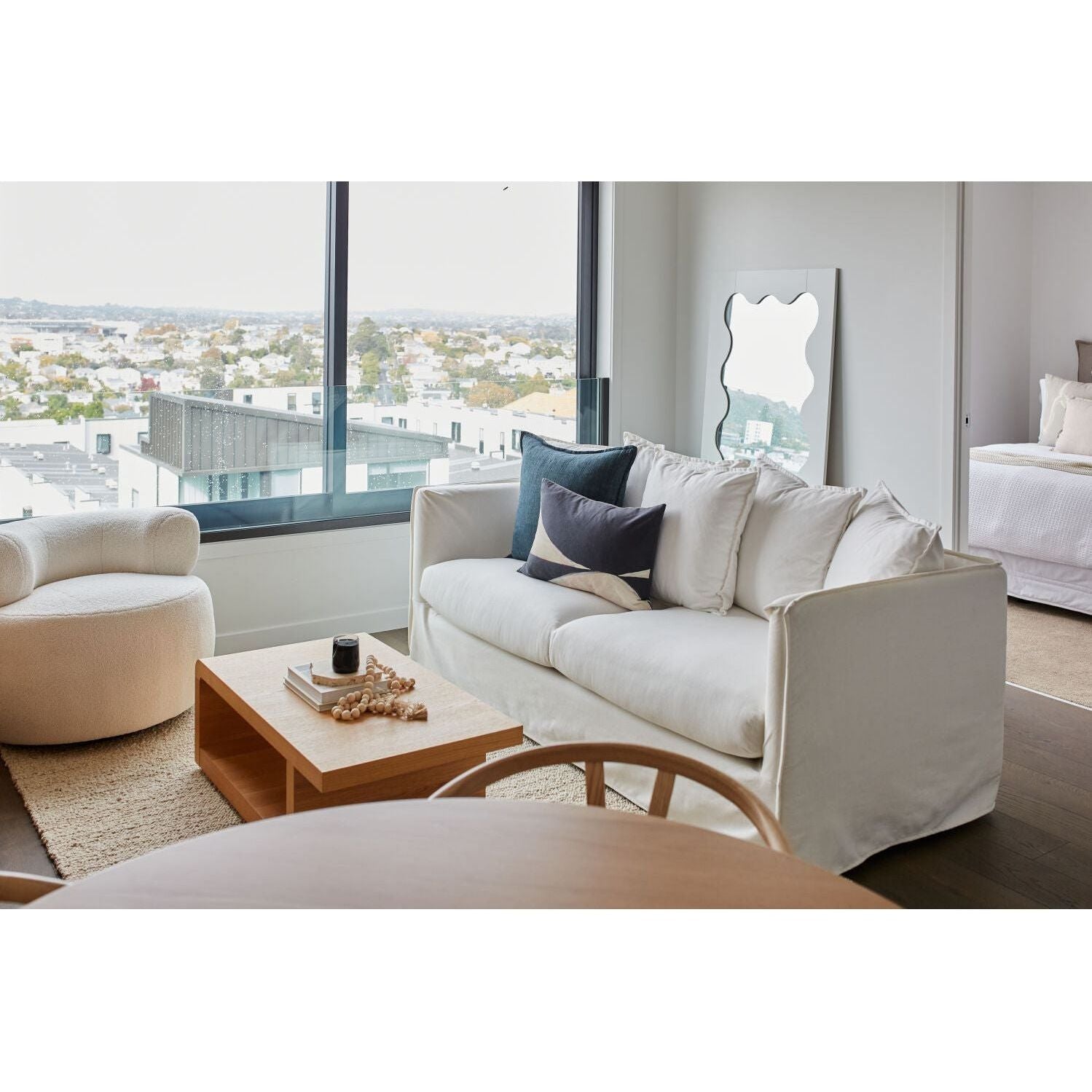 Enjoy relaxed living on the Liam slip cover lounge suite collection of sofas and armchair with slim arm. With cosy back cushions, it is a versatile and comfortable choice for your living space. This combination of features makes for a functional and stylish seating option that can easily suit many decor styles and preferences. Expertly made in Danske Mobler's Mt Eden factory, the Liam lounge suite is available in the Chambray range of fabrics by Warwick.