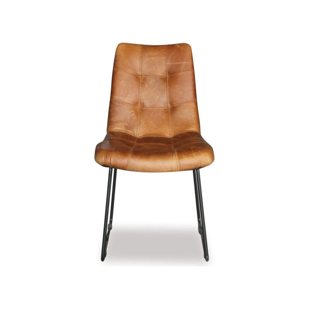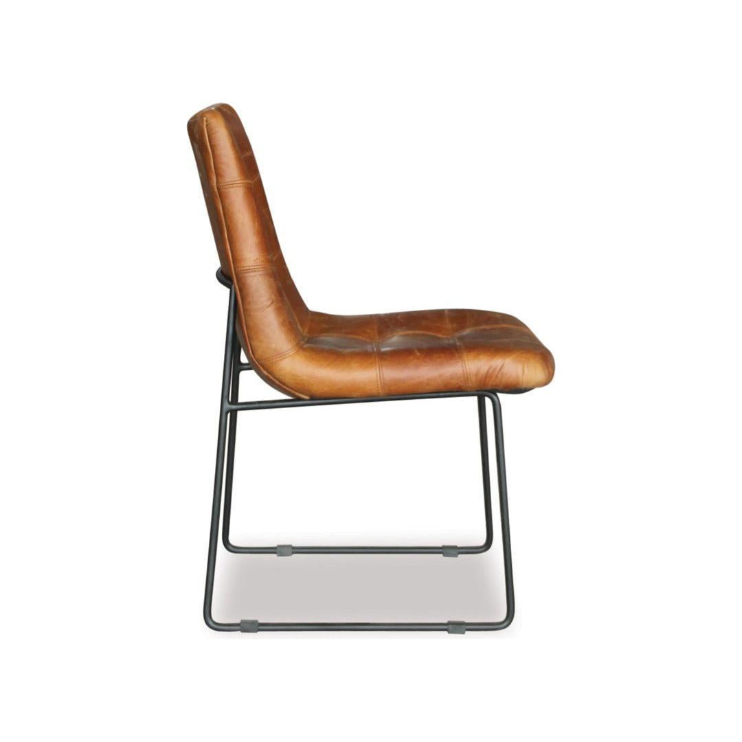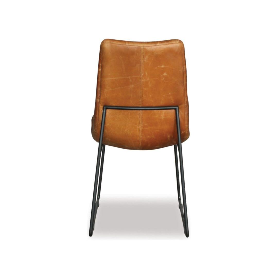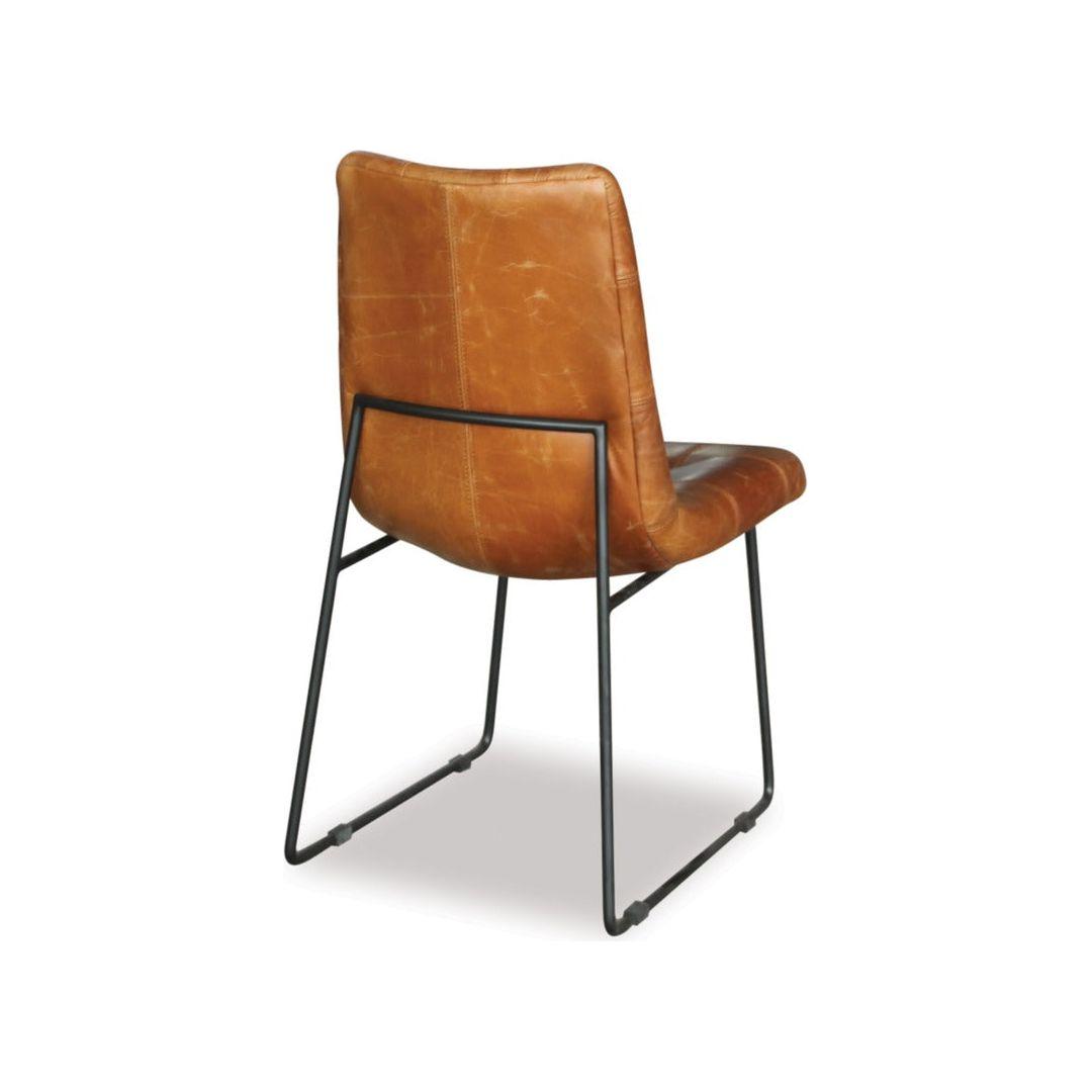 Add comfort and style to your dining area with the Luke dining chair. The fully upholstered seat and back in tan leather features detail stitching, complemented by a black metal frame. The Luke dining chair will look great with many styles of dining tables.