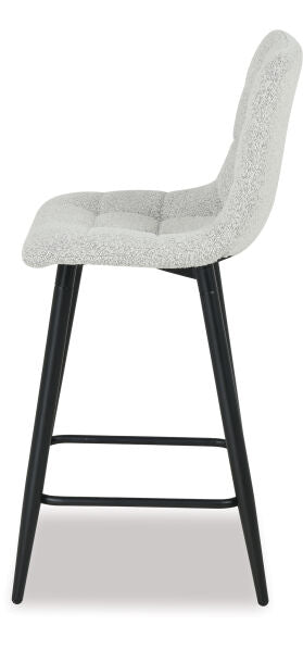 Add comfort and style to your breakfast bar with the Nirvana barstool. The fully upholstered seat and back in boucle fabric or vintage grey PU is complemented by a matt black metal leg. The Nirvana barstool offers great value and design.