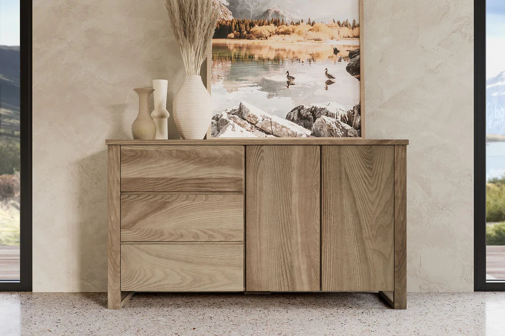 Simple yet striking, the clean lines of the Ohope Buffet demonstrates fundamental contemporary style. The straightforward design really highlights the natural wood grain allowing the Ash timber itself to be the star of the show. A great place to start in your dining room, the Ohope can form the foundation for you to build your design around. Complement with interesting textures and pops of colour or stick to neutral colours and just a handful of furnishings for a minimalistic appearance.