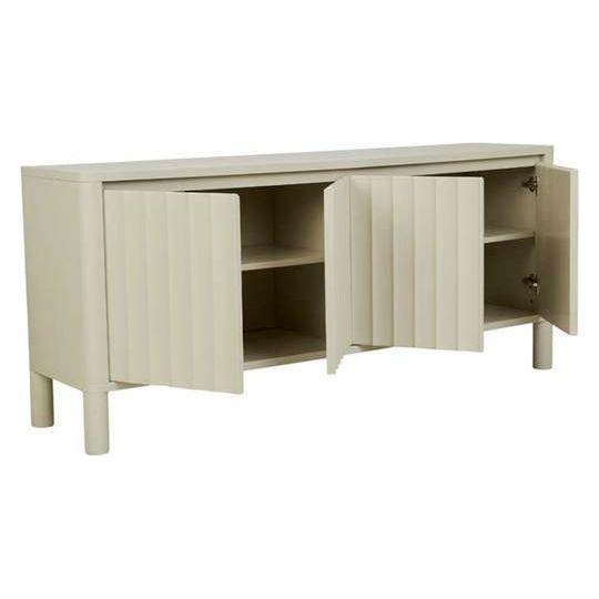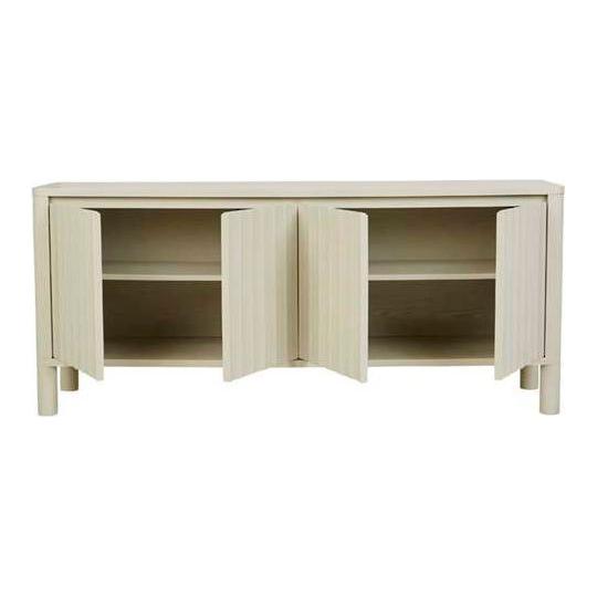 Graceful fluting on the Oliver Buffet highlights its contemporary appeal for an elegant, understated look. Elevated on pillar legs this handsome buffet has discreet shadowline handles on four doors to reveal abundant storage.