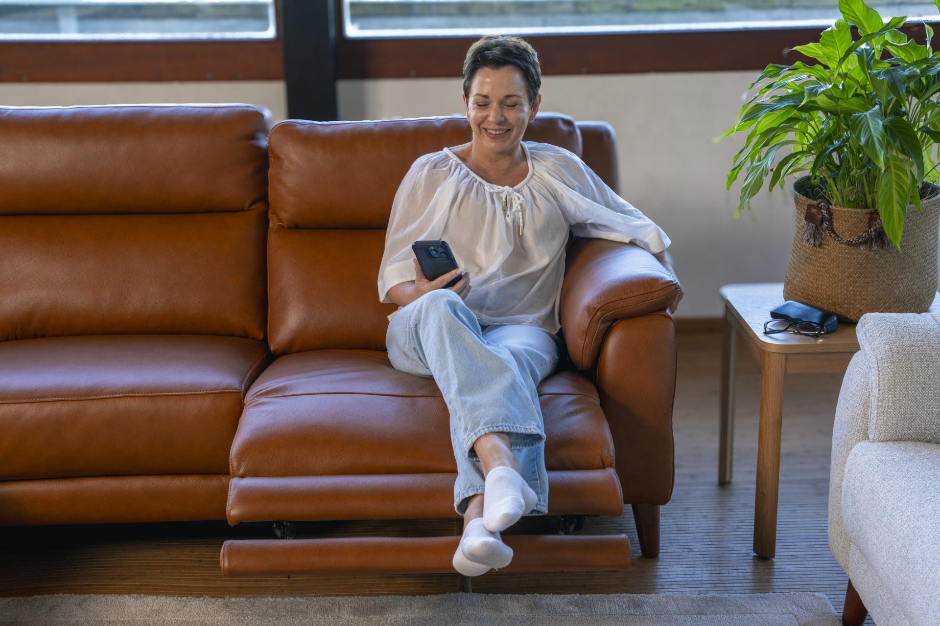 Relax in elegance with the Sereno 2 Seater Power Reclining Sofa with Chaise (left-hand facing). This mid-century marvel showcases appealing proportions and seamlessly integrated power functionality for a family-friendly design. With just a touch of a button, you can customise your seating position or recline back on the chaise to relax completely. Featuring high, tapered wooden legs, a supportive back, and soft cushioned arms, the Sereno is your go-to for stylish afternoon downtime!