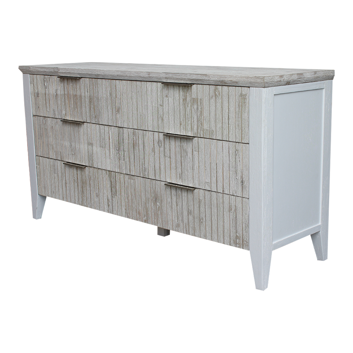 Funky and off-beat, our Waihi collection is a modern take on the classic 2-tone furniture. Featuring soft ribbed panelling, the white-wash acacia timber plays off the light in the room giving darker shadowing and lighter washed out patches.